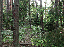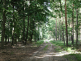 Wenn Sie links in den Waldweg einbiegen, erreichen Sie eine Schonung. |