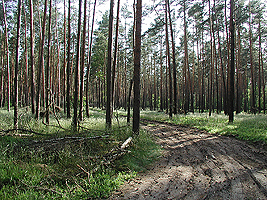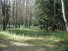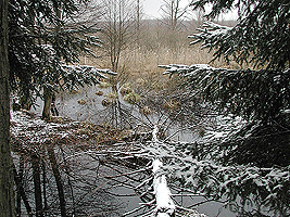 Sie wandern bis zu einer Wegabzweigung rechts. An einem Baum ist ein Schild mit einer Nummer 1 angenagelt. An diesen Weg biegen Sie rechts ein. Nach etwa 100 m müssen Sie wieder links abbiegen. Sie können natürlich von dieser Stelle aus noch einen Abstecher zum Moor machen. |